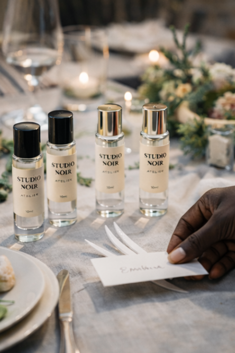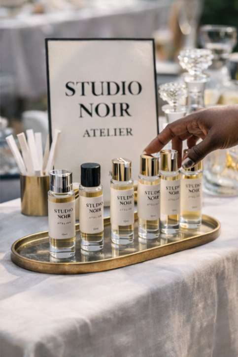 Studio Noir Atelier offers immersive fragrance experiences designed to elevate your event. Each service is curated with intention, minimal elegance, and luxury-inspired scent selections.